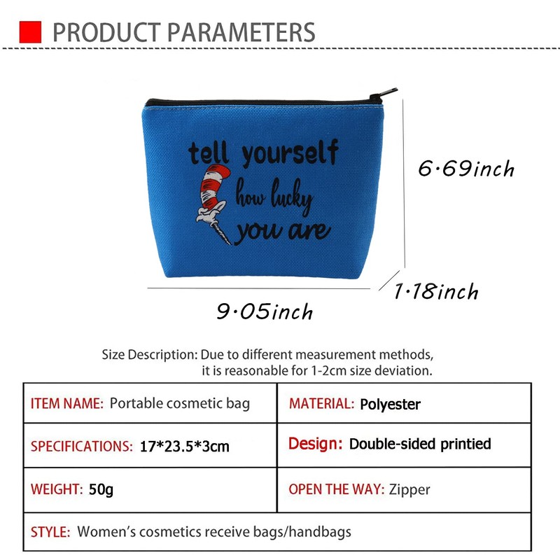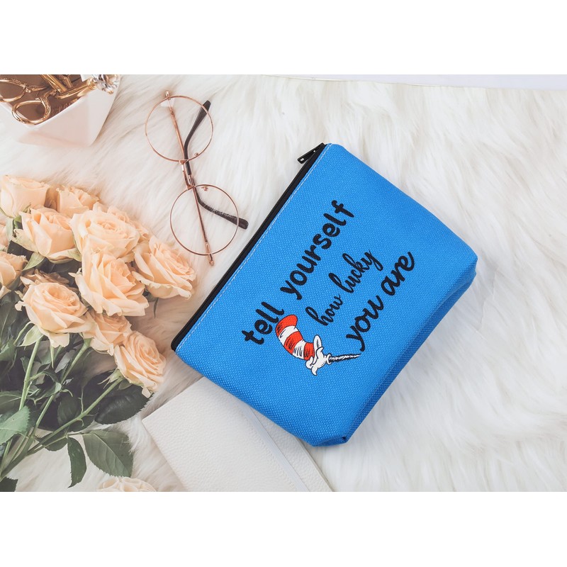 G2TUP Bolsa de cosméticos Broadway inspirada en la música Seuss Hat Bolsa de maquillaje Tell Yourself How Lucky You Are, Cuéntese a sí mismo, 1