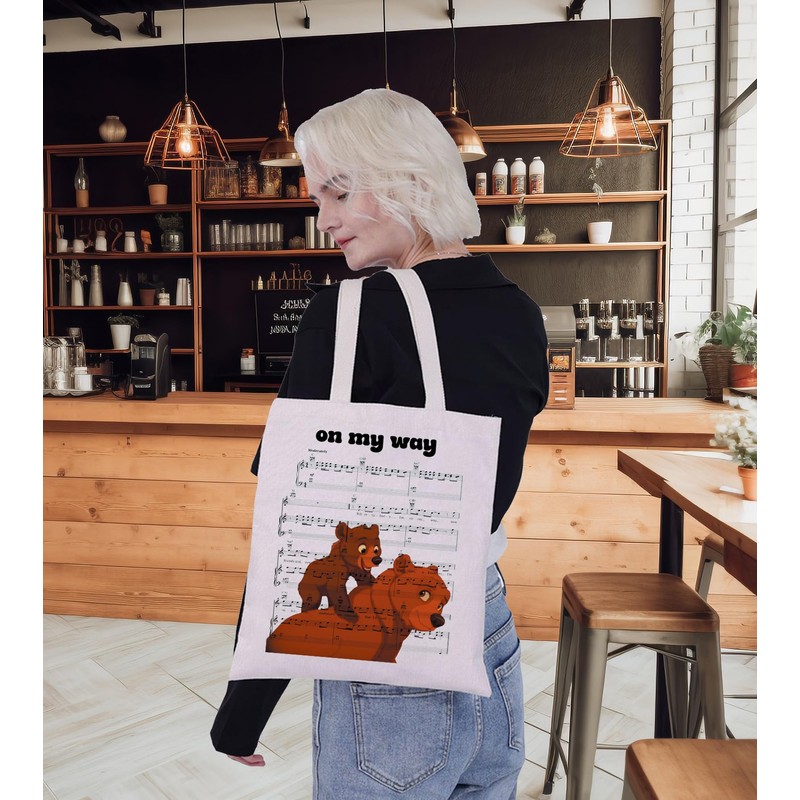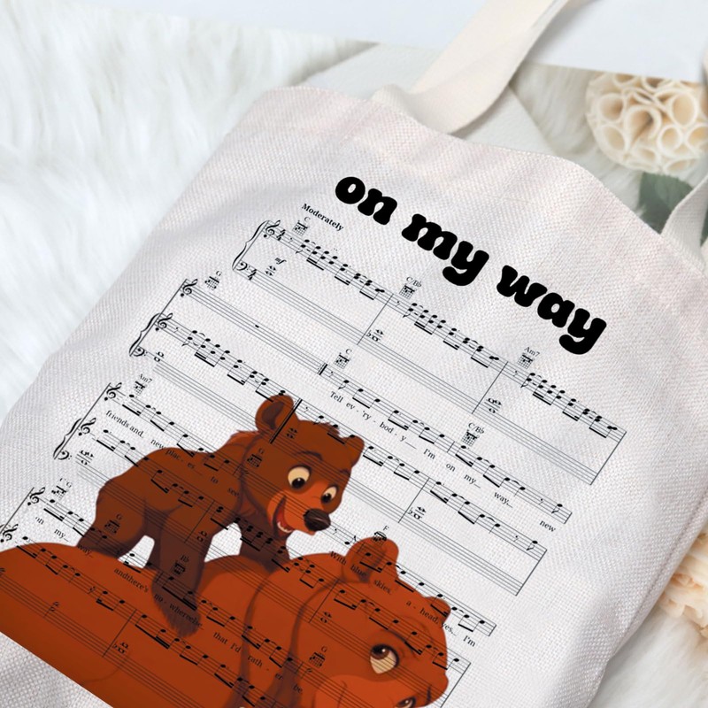 G2TUP Funny Kenai & Koda Canvas Tote Bag Movie Fans Gift On My Way Bear Shoulder Bag Bear Merchandise (On My Way TG)