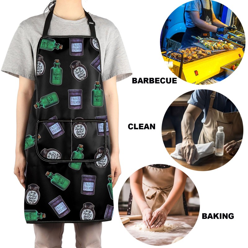 G2TUP Nightmare Sally's Potion Kitchen Apron Sally's Potion Jars Gifts Deadly Nighshade Gifts Sally's Potion Merch (Worm’s BREATH CA)