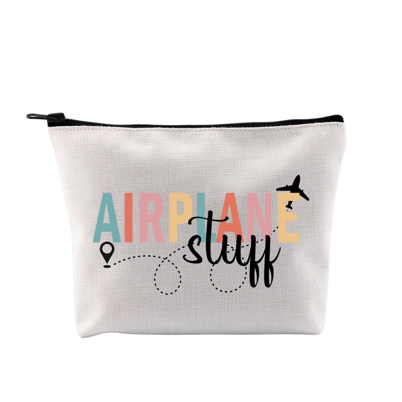 G2TUP Travel Lover Gift Travel Is My Therapy Makeup Bag Adventure Lover Zipper Cosmetic Bag Traveler Themed Gift World-Wide Traveler Zipper Bag (Airplane Stuff MB)