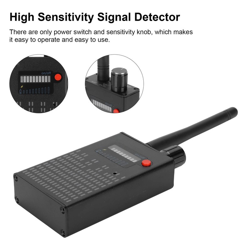 1、Professional radio wave detection device with high sensitivity, adjustable threshold, and large detection frequency range. 2、There are only power switch and sensitivity knob, which makes it easy to operate and easy to use. 3、It can detect bugs and locators equipped with 2G / 3G / 4G cards, as well as locators that upload GPS locator data packets at high speed. 4、It can detect 1.2G/2.4G/5.8GHz wireless cameras and wireless eavesdropping devices. 5、The detector adopts sound and light alarm indication, the detection alarm is more accurate and reliable.