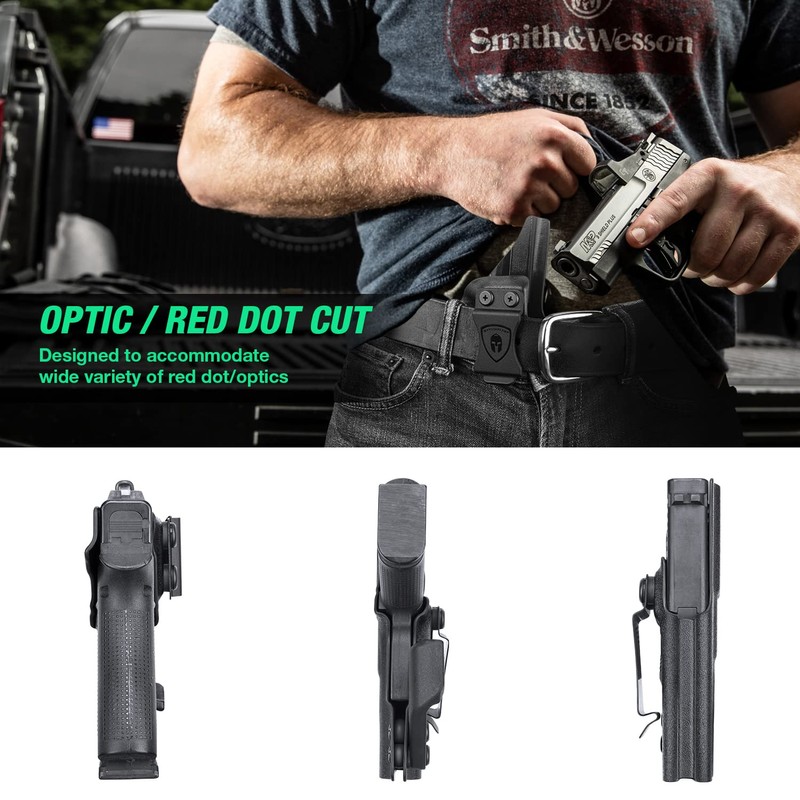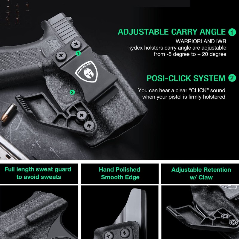 - FULL LENGTH SWEAT GUARD & POSI-CLICK AUDIBLE SYSTERM - Full length sweat guard can prevent sweat towards your pistol - You can hear a clear "CLICK" sound when firearm was firmly seated