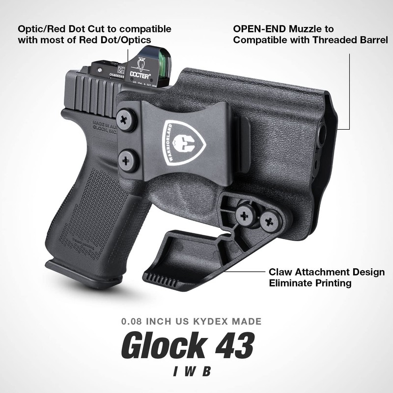 - OPTIC CUT & CLAW - This Glock 43 holster are designed to accommodate wide variety of optics - Claw can eliminate printing made holster more concealable when carrying(equipped with extra screws for no claw style carry)