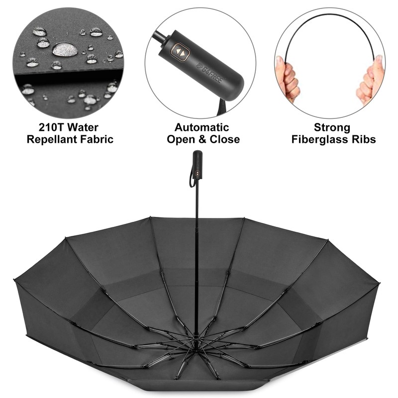 - AUTO OPEN & CLOSE: The fully automatic mechanism is perfect for one-hand operation. You can quickly open or close the umbrella at the press of a button. This folding umbrella is also designed with a non-slip handle that grips comfortably and firmly