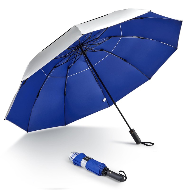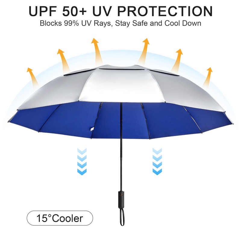 G4Free 46 Inch Large Golf UV Umbrella Compact Reverse Travel Sun Protection Umbrella 10 Ribs Windproof for Rain Double Canopy Automatic Open Close (Sliver/Blue)