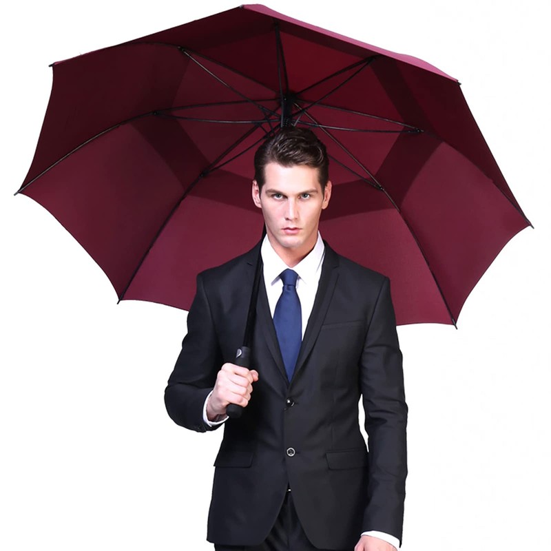 G4Free 62 Inch Large Automatic Open Golf Umbrella Extra Oversize Double Canopy Vented Windproof Stick Umbrellas Waterproof (Wine Red)