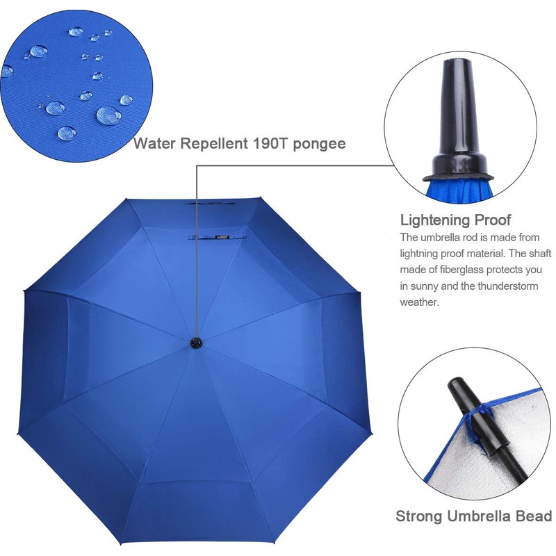- Windproof Waterproof: Double canopy design prevents the umbrella from inverting during high winds and you won’t be blown away easily;190T ultra-high density pongee fabric is water repellent, protecting you from the heavy downpour.