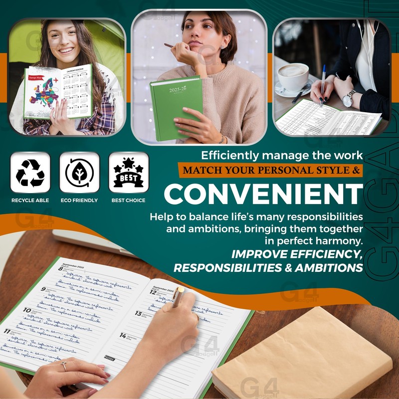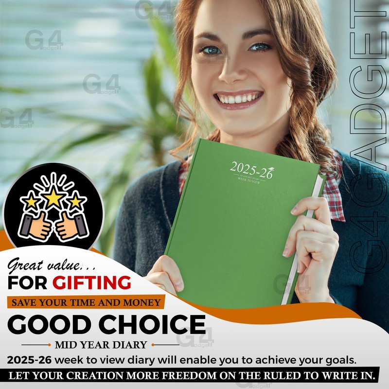 G4GADGET 2025-2026 Academic Student Diary A5 Green Week to View Case-bound