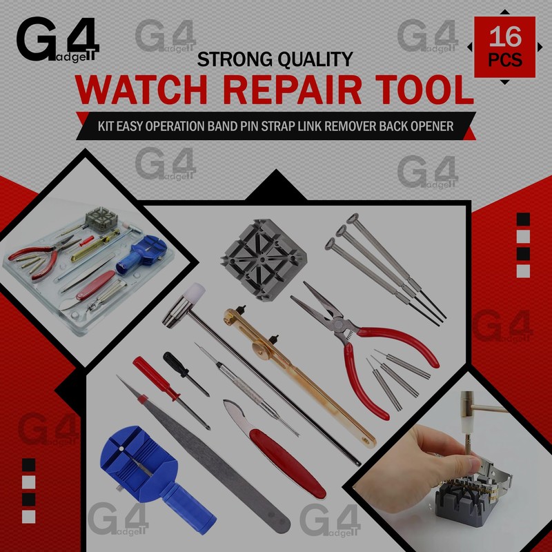 G4GADGET Strong Quality 16pc Watch Repair Tool Kit Easy Operation Band Pin Strap Link Remover Back Opener