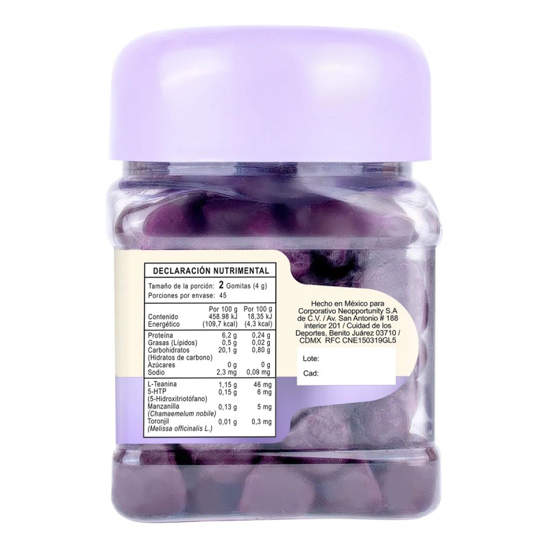 La L-teanina y el 5-HTP presentes en cada porción ayudan a promover un estado de calma y bienestar, facilitando la transición hacia el sueño. Además, la manzanilla y el toronjil aportan un toque de sabor natural, haciendo que cada gomita sea no solo efectiva, sino también sabrosa. Este suplemento es libre de gluten y vegano, lo que lo convierte en una opción adecuada para diversas necesidades dietéticas.
