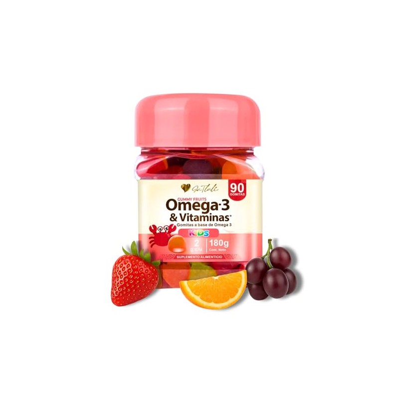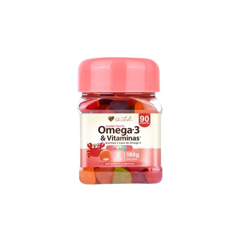 Ga Tlali Omega 3 y Vitaminas Omega Kids | 90 Gomitas Con Sabor Frutal | VItaminas Infantiles | Contenido Neto 180g