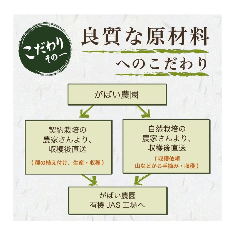 - This is a pure domestic tea made with 100% raw materials grown in Japan. Gabai Farm is 100% carefully manufactured. This high-quality raw material was cultivated with heart in cooperation with producers from all over Japan. Is it really safe? Bai farm regularly conducts residual pesticides, biological inspection, and radiation testing to maintain quality. Even if it is cultivated without pesticides, residual pesticides are conducted as an essential subject. Radiation testing and all raw materials are conducted regardless of prefecture. We produce microorganisms with any high quality raw materials