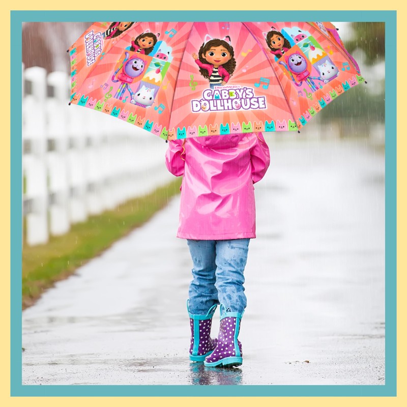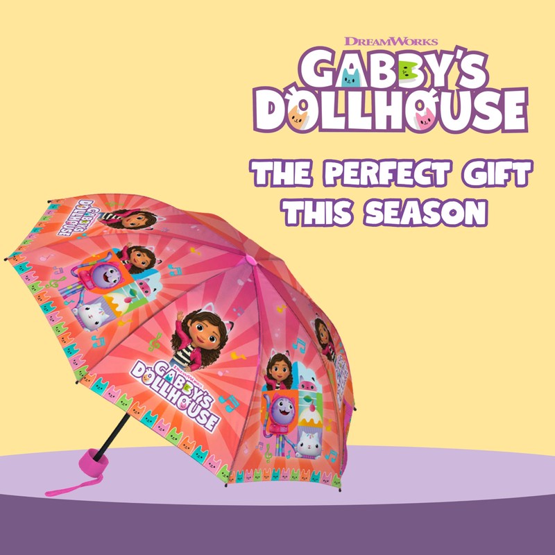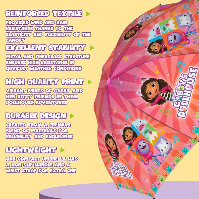 Gabby's Doll House Folding Umbrella Compact Umbrella for Girls, High Resistance Structure, Umbrella in Gabby Design, Umbrella for Children