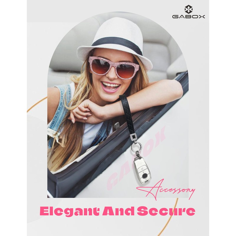 GABOX Extended Wristlet Keychain for Women - Rhinestone Ring Carabiner & Horseshoe Clasp for Car Keys Rings - Wrist Strap for Secure and Stylish Convenience - Black PU Leather & Silver Metal