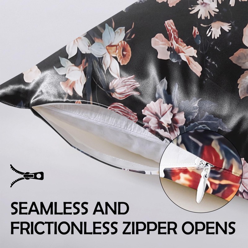 GABraden Satin Pillowcase 2PCS,Mulberry Silk Feeling Pillow Cases for Hair and Skin with Hidden Zipper,Satin Cooling Pillow Covers with Standard Size 20"X 26" (Black-02)