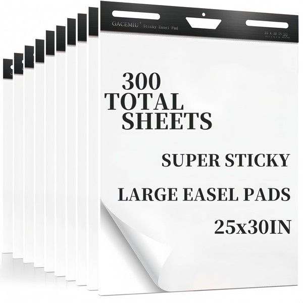 GACEMIU Sticky Easel Pad,30 Sheets/Pad, Super Sticky Flip Chart Paper-10 pads,25 in x 30 in