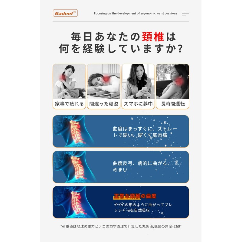 • [New Neck Stretcher Pro] Does your neck and shoulders get stiff when working with your smartphone or computer for a long time? Gadeel has designed a new neck pillow that meets modern fashion and buying needs through sales data and years of repeated testing. New Neck Stretcher Pro