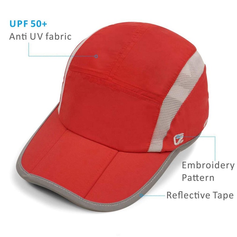 GADIEMKENSD Adjustable Quick Drying Reflective Foldable Running Cap Outdoor Sports Hat 50+ UPF Inhibit UV Mesh Race Performance Water Repellency Baseball Cap (Red)