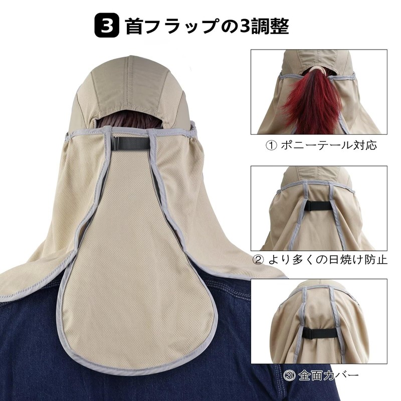 [GADIEMKENSD] Foldable Fishing Cap with Neck Flap, UPF 50+ Sun Protection, Windproof, Removable Design, Multi-Level Adjustment, Khaki, 55.0-60.0 cm