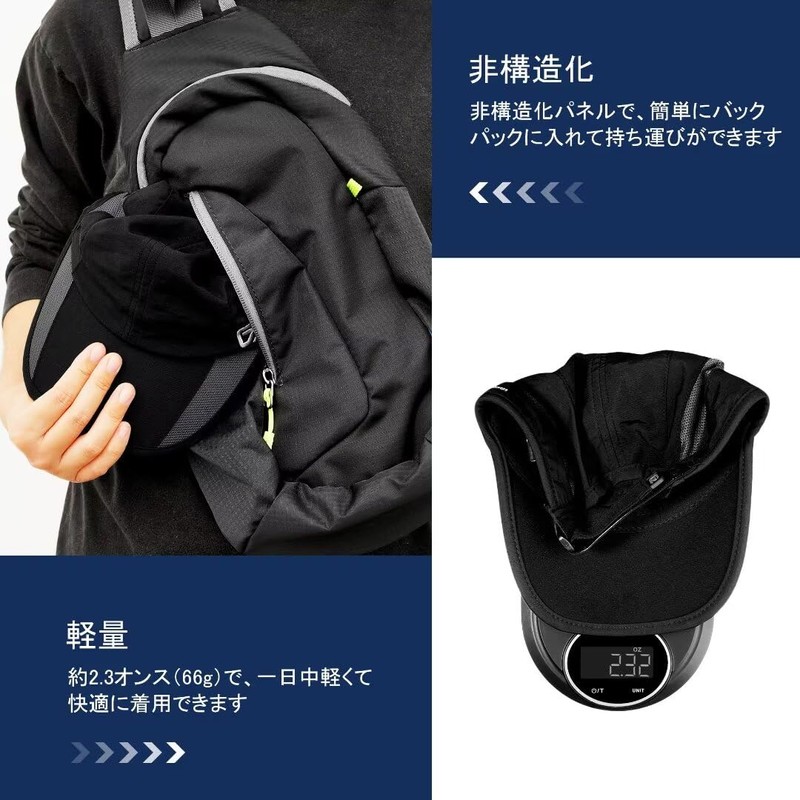2. - ULTRA LIGHT - This super lightweight performance sports cap weighs only 2.4 ounces (about 70 grams). The unstructured design allows it to be placed in a backpack, and is made of soft material, making it convenient to carry.