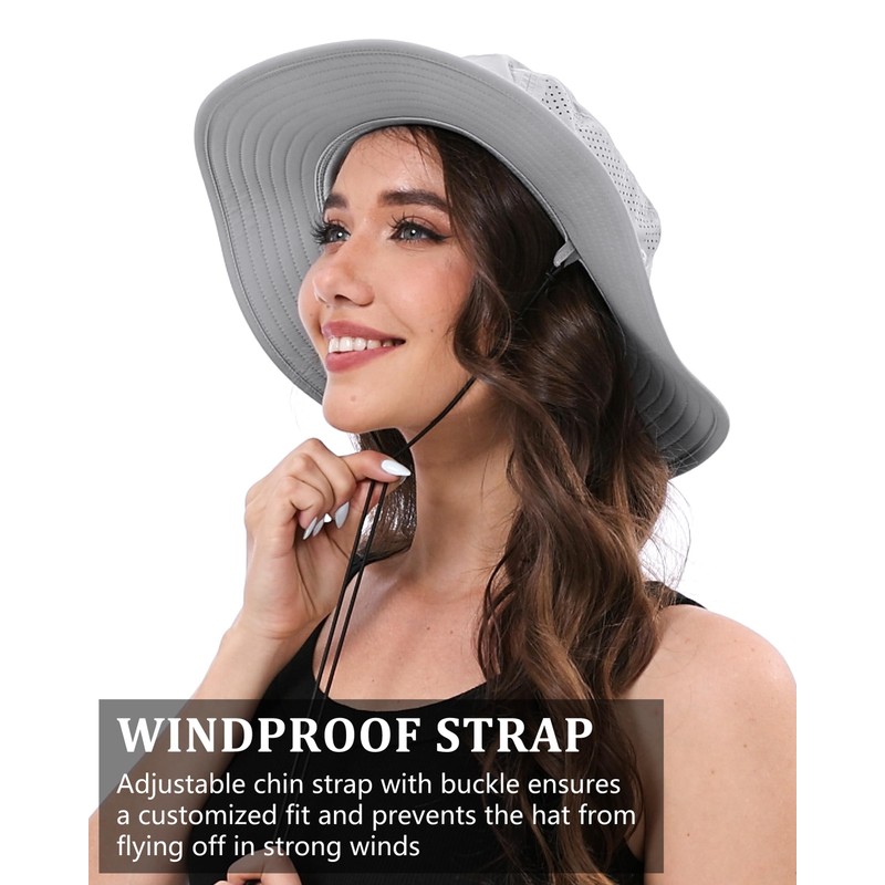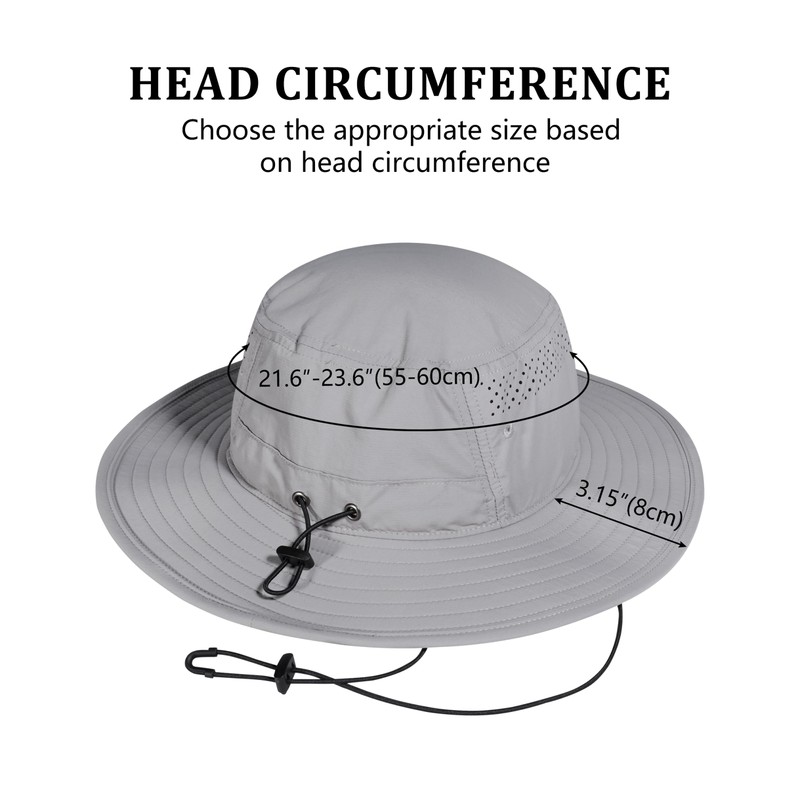 - WINDSCREEN STRAP DESIGN An adjustable back strap fits for 21.6-23.6 inch, and a secure chin strap ensures this unisex fishing hat fits tightly on windy boat trips or weekend hikes. A reliable choice for men and women who need stable sun protection in changing conditions