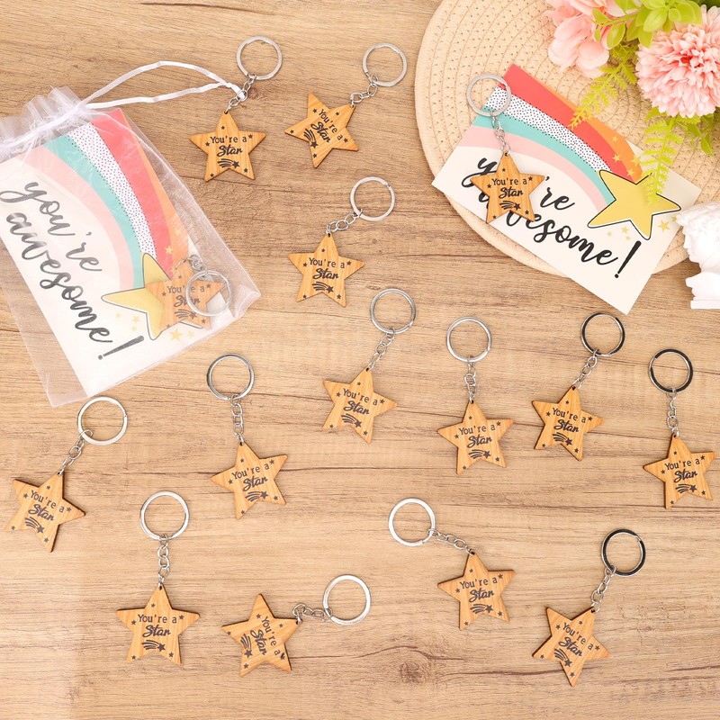 - 【30Set End Of Term Gifts For Children】 30 Wooden star keychain with "you're a star" written on it, 30 Encouragement cards that say, "You're awesome." where you can write blessings, and 30 Organza Pouch for packaging. A very practical gift, students can see the motivational text on the wooden plaque every day, encouraging them all the time. And they will also remember their unforgettable teacher!
