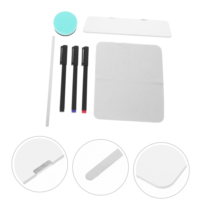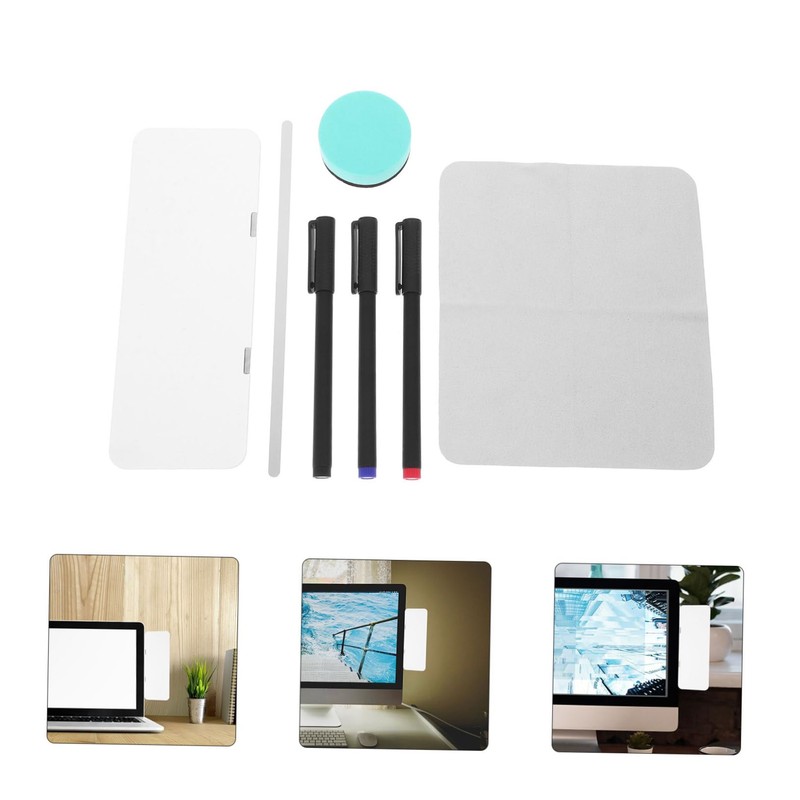 1 x monitor memo board + 1 x magnetic strip + 3 x whiteboard markers + 1 x eraser