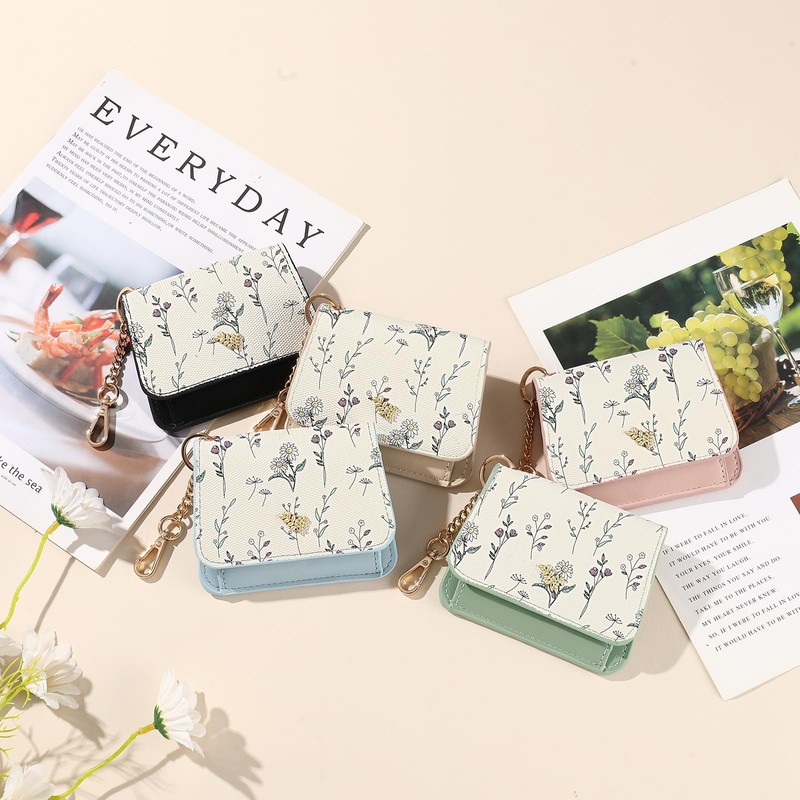 - Well Made Floral Vegan Leather Wallet with Chain: The key chain wallet is made of soft premium quality vegan leather with a durable vintage snap button, smooth zipper, and a removable keychain. The small wallets for woman is soft to the touch and portable