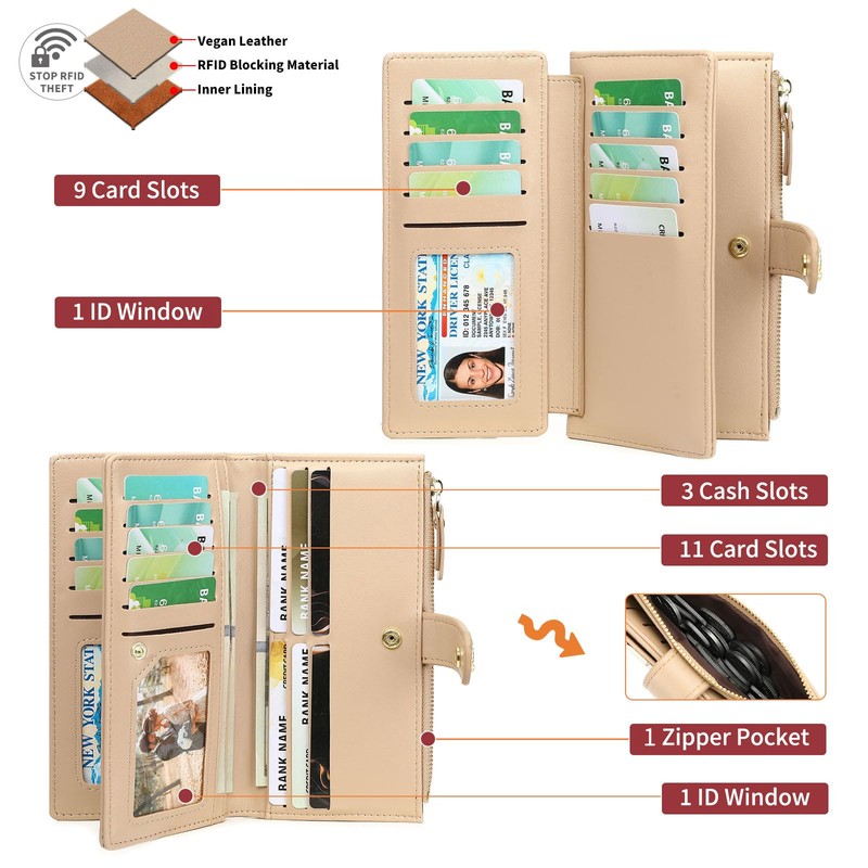 - Rfid Blocking: Each card slot in our Rfid wallet for women is equipped with Rfid blocking lining, which will protect valuable information stored on the Rfid chip from unauthorized scanning. This is a safe women's wallet