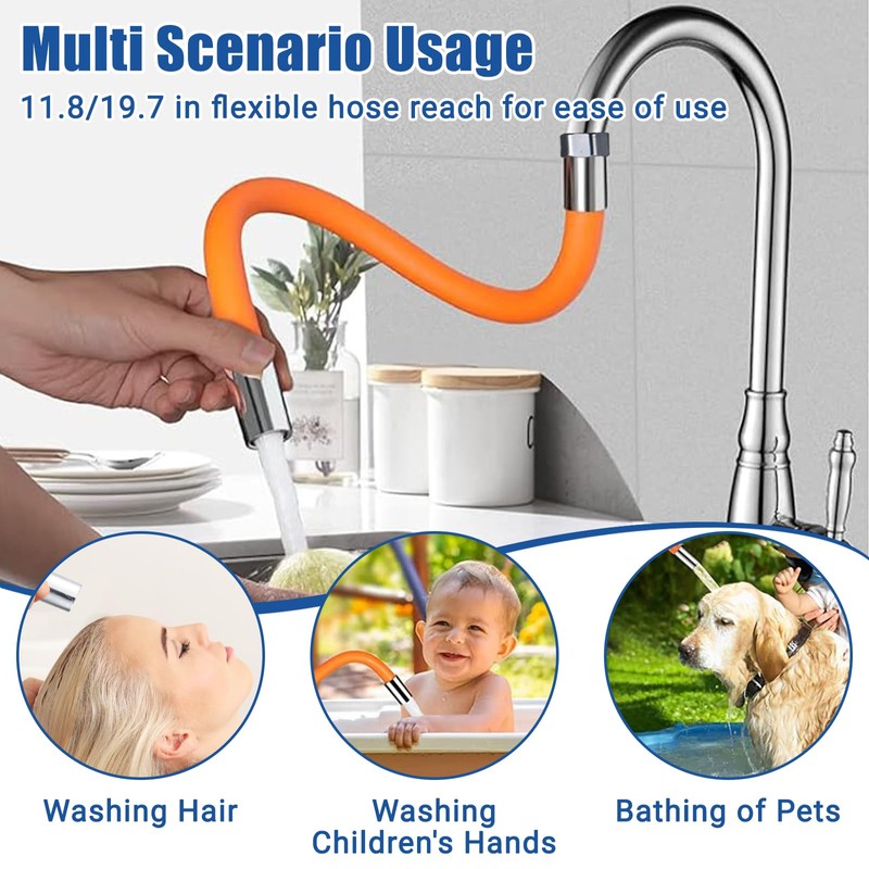 - Rotación Completa Flexible de 360°: El extensor del grifo lo gira o se puede ajustar en cualquier dirección o ángulo que desee, lo que facilita la limpieza de suministros de gran tamaño en el fregadero o como platos grandes o sartenes, etc