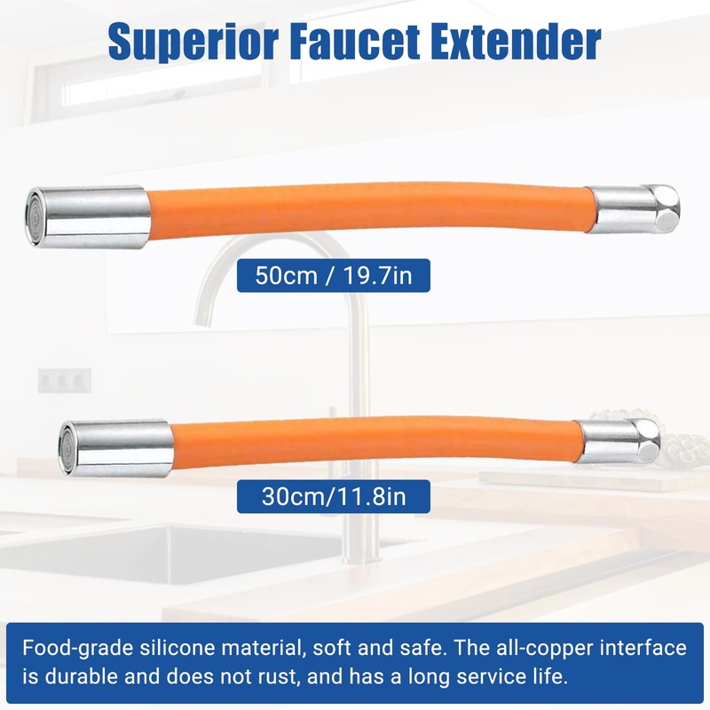 - Vaya a Grandes Longitudes: Con gaeshow aireador extensor de grifo giratorio, puede agregar 30 / 50 cm completos a la longitud de su grifo. Después de un día duro, puede disfrutar de una ducha relajante mientras el agua cae en cascada desde casi un pie por encima