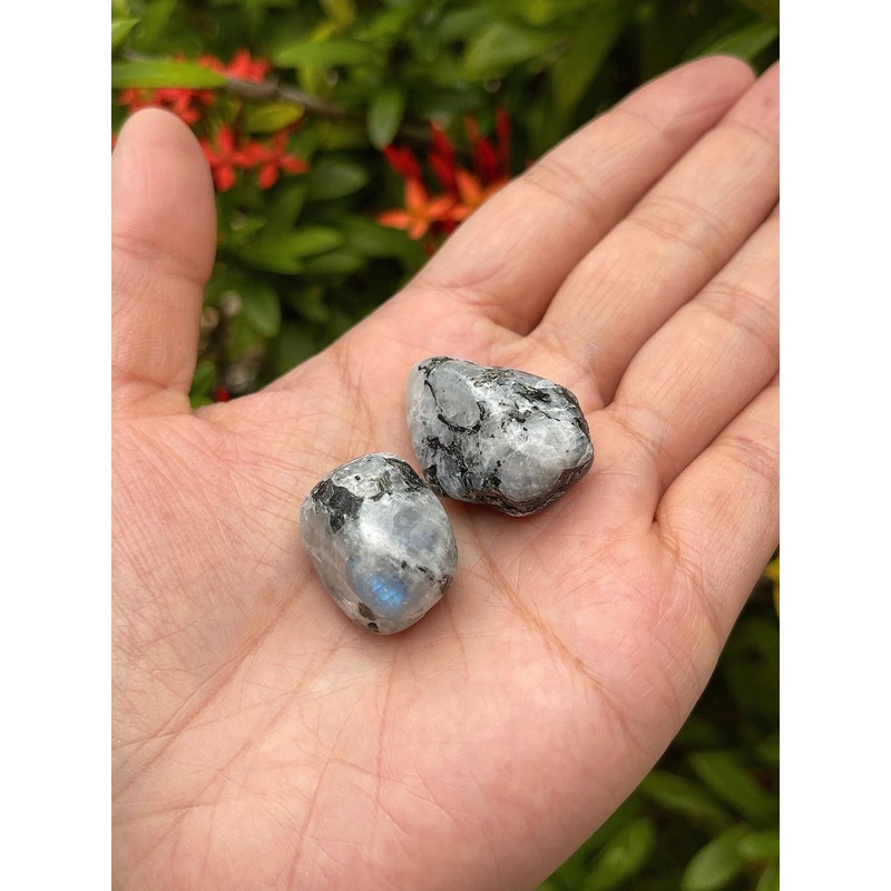 - Shapes, sizes, colors, and patterns of Rainbow Moonstone tumbled stone may vary as it is a natural stone.