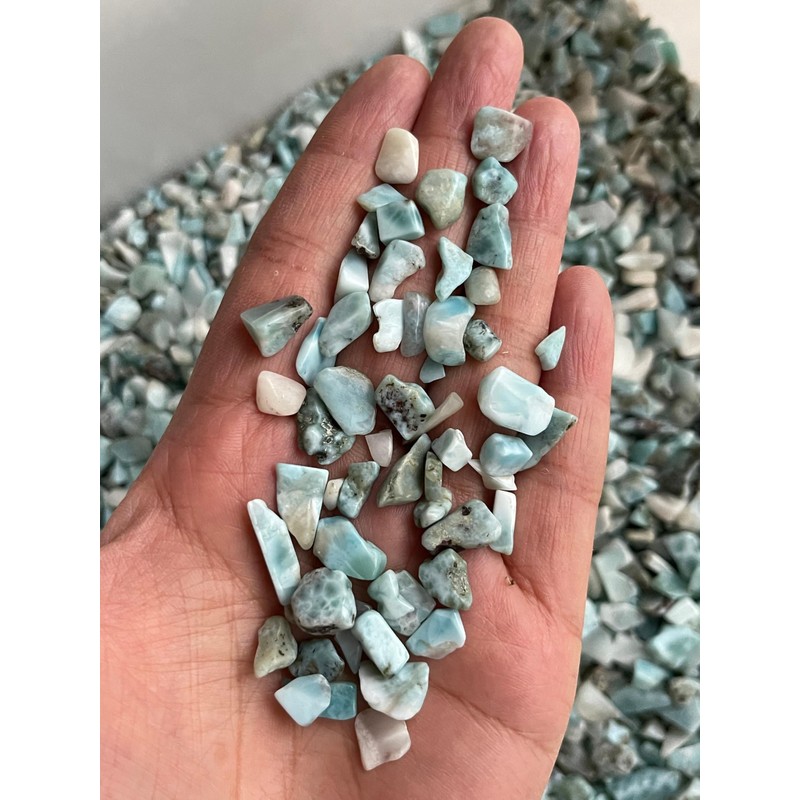 GAF TREASURES Larimar Chips C Natural Mini Larimar Stones, Crushed Undrilled Larimar, Semi-Tumbled Genuine Larimar (1/8 lb)