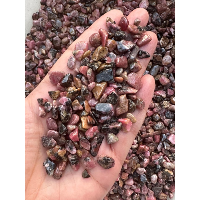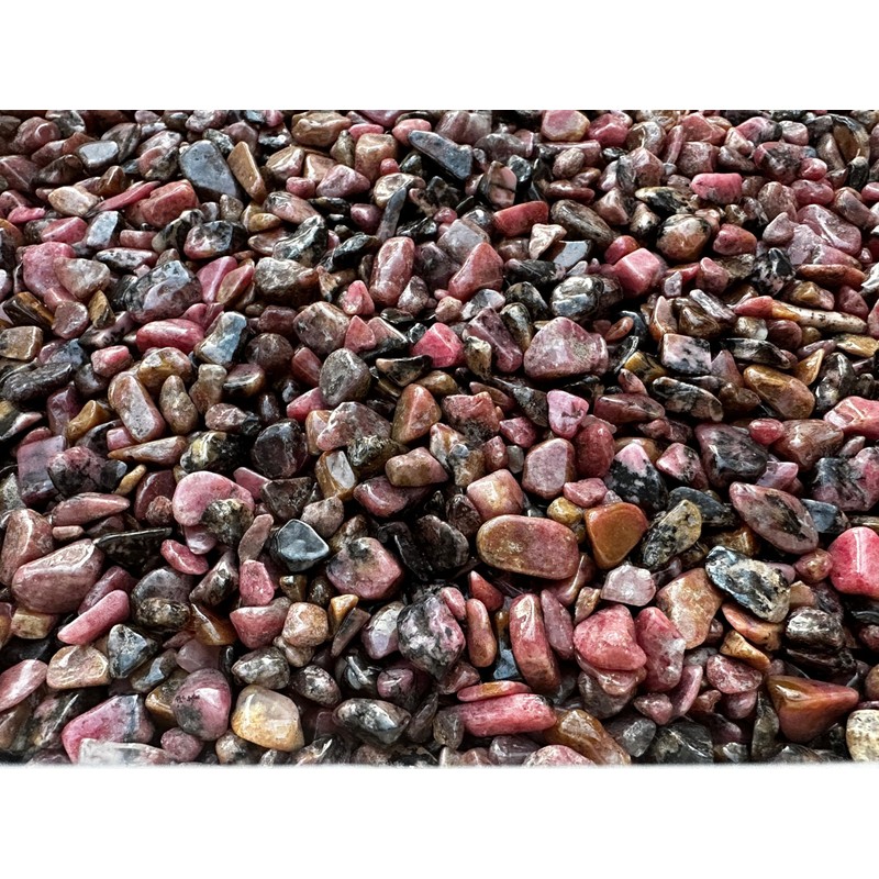 GAF TREASURES Rhodonite Chips C Natural Mini Rhodonite Stones, Crushed Undrilled Rhodonite, Semi-Tumbled Genuine Rhodonite (1/4 lb)