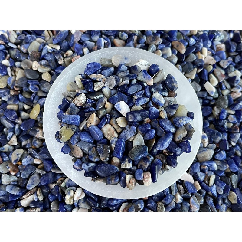 GAF TREASURES Sodalite Chips C Natural Mini Sodalite Stones, Crushed Undrilled Sodalite, Semi-Tumbled Genuine Sodalite (1/4 lb)