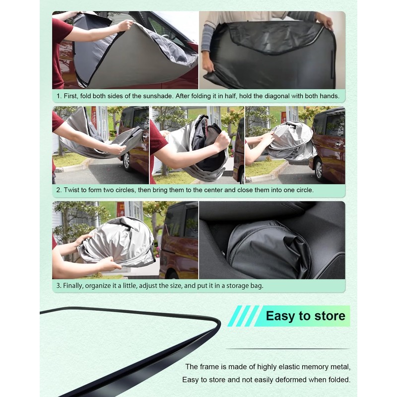 • Quick installation and removal: no need to use suction cups. Simply snap on with 2 visors. It is easy to disassemble and can be packed and placed after folding twice, making it flexible to use.