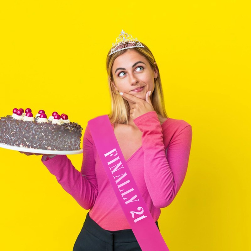 GAFATORY Pink 21st Birthday Headband and Finally 21 Sash