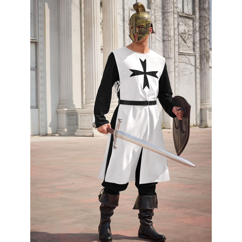 Gafeng Men's Renaissance Costume Knights Templar Crusader Tunic Medieval LARP Halloween Adult Two Piece Outfits