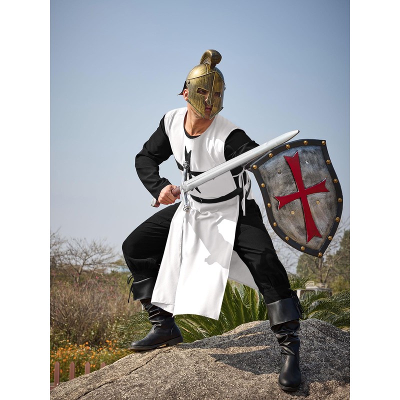 - Material: The crusader cosplay halloween costume is well made of high quality polyester and cotton fabric, soft, comfortable, lightweight, breathable, skin-friendly, easy to clean and quickly dry.
