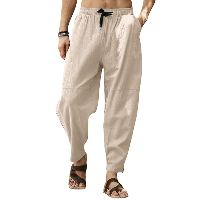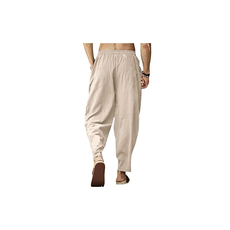 - Men's casual cotton linen cropped harem pants pajamas featuring elastic drawstring on the waist, solid color, lightweigt, loose fit, 4 pockets, breathable. Suitable for summer days daily wear. It will keep you cool all the time.