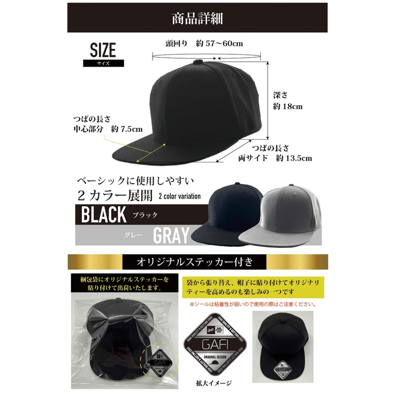 GAFI Cap, Hat, Flat Visor Cap, Baseball Cap, Snapback (Secure Fit and Won't Slip Off), Outdoor Use, 100% Cotton, One Size Fits Most, Unisex, Walking, UV Protection, Black