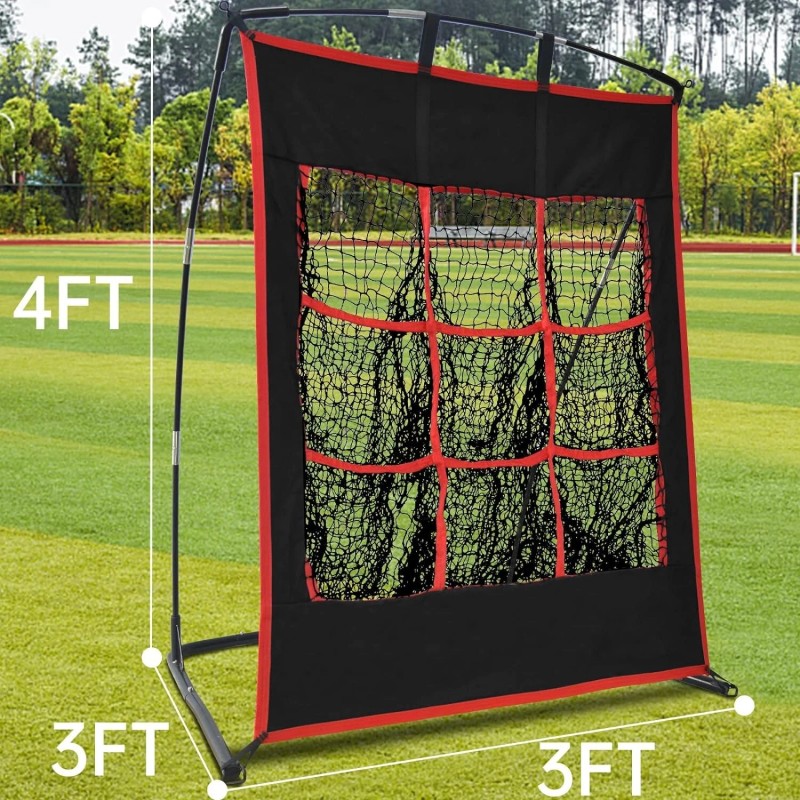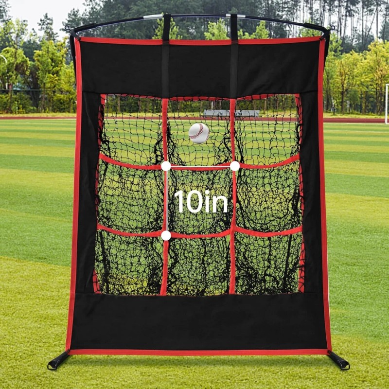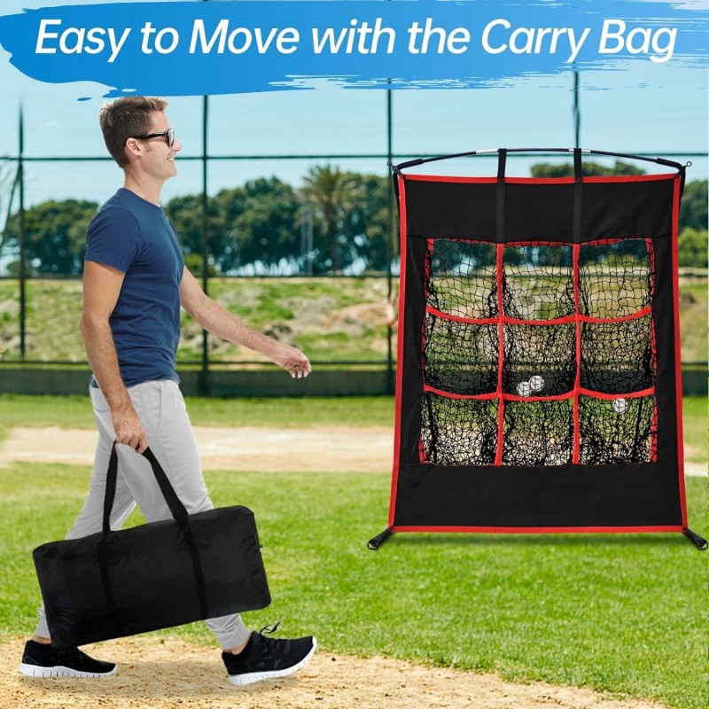 - Baseball Pitching Net with Humanized Design: The 9 pockets design allows you to practice both pitching and throwing skills to improve accuracy. Count your hits and misses on your own to get feedbacks.No need to worry if the local field is available or if the yard is too small!