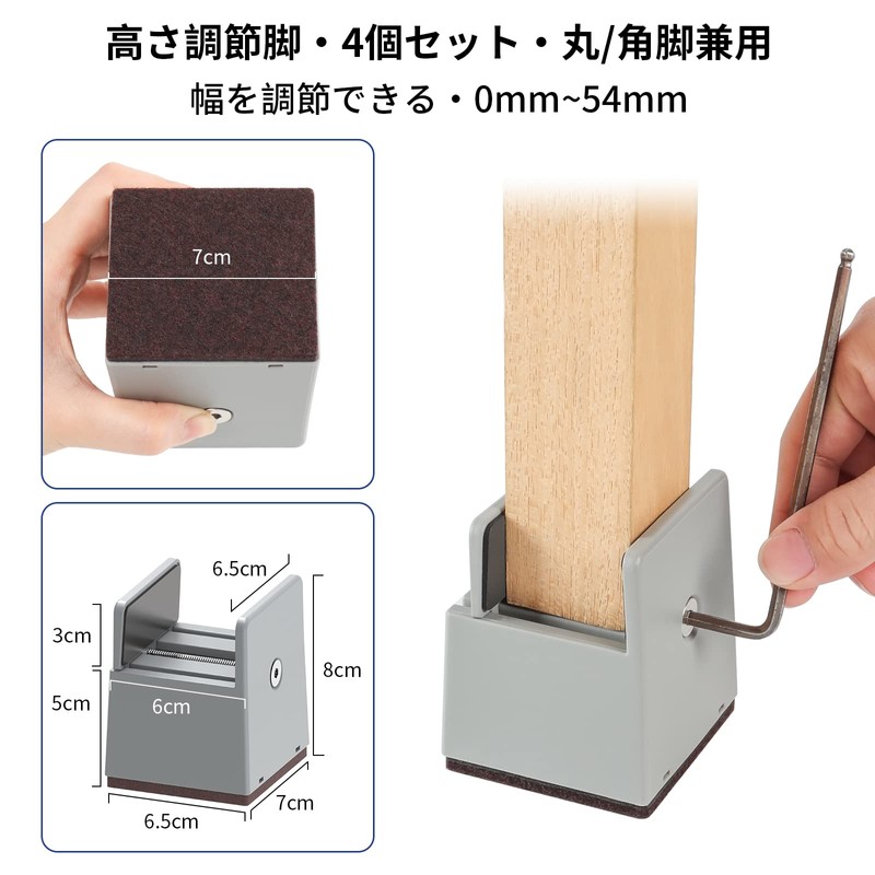 - 【Adjustable table thickness】Package included:Set of 4 pieces (height 5cm) Compatible leg sizes: 0 - 5.4 cm (0 - 5.4 cm) adjustable. Color: Gray