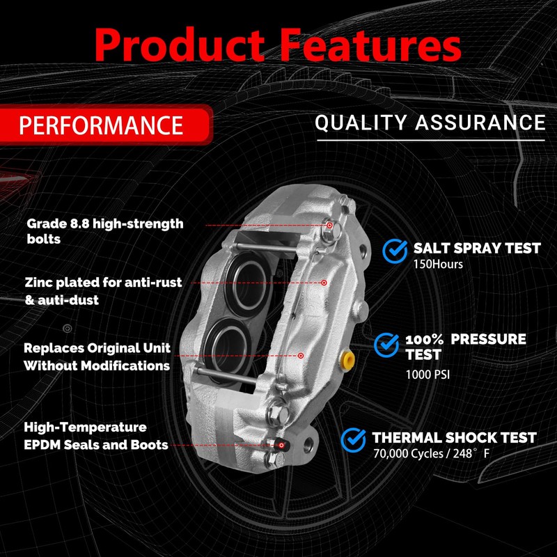 - [Anti-rust]: The finely galvanized brake caliper surface has excellent anti-rust effects and environmental protection performance. A 150-hour salt spray test showed no rust, ensuring the brake caliper remains clean and durable even in harsh environments.