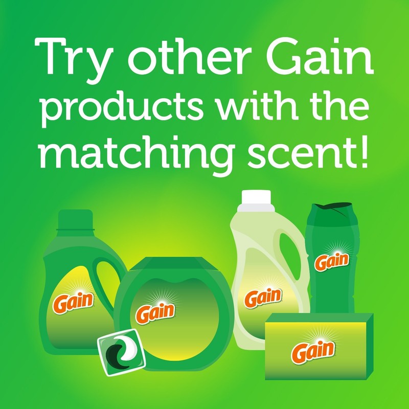 • Wash your laundry with matching scents in Gain Laundry Detergent, Liquid Fabric Softener, and Scent Booster Beads then add dryer sheets to the dryer to keep your laundry smelling amazing even after six weeks