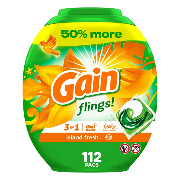 Gain Flings Liquid Laundry Detergent, Island Fresh Scent, 112 Count, HE Compatible