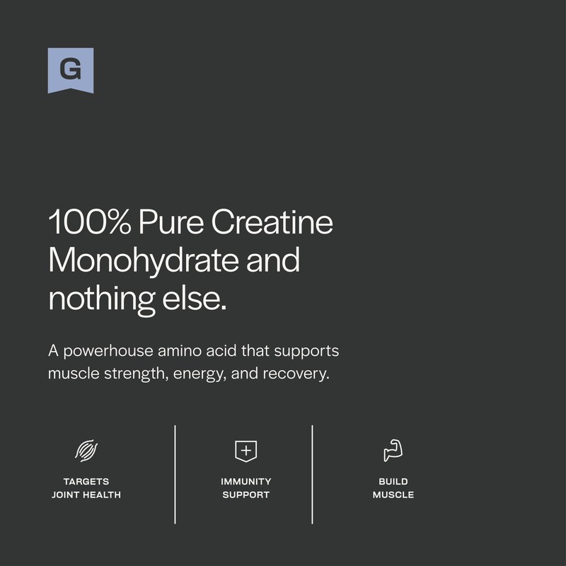 - CREATINE MONOHYDRATE POWDER: Creatine is a powerhouse amino acid that helps support muscle strength, short energy bursts and recovery. Our formulation includes 5g of Creatine Monohydrate per serving to help fuel your high-intensity workouts or any challenge that lies ahead.