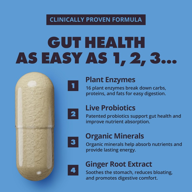 - Heat Stabilized Probiotics Made here in the USA of 100% organic plant based ingredients including heat and acid stabilized pre and probiotics and organic minerals, this digestive enzyme supplement for men and women effectively turns food into energy for your your body.