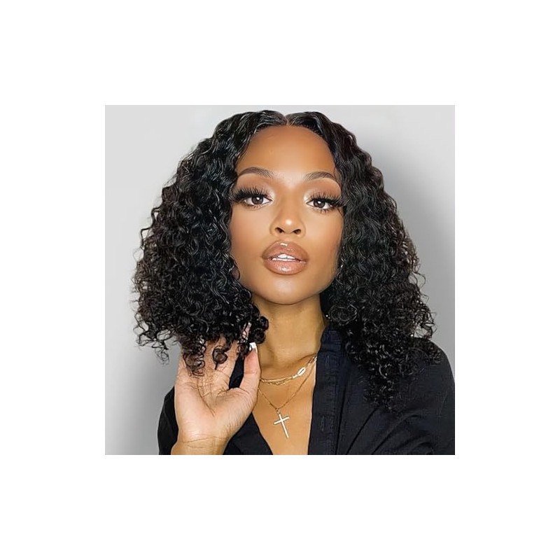 Gaishi Deep Wave Lace Front Wigs Human Hair Curly Lace Frontal Wig (Natural Black, 16 Inch)