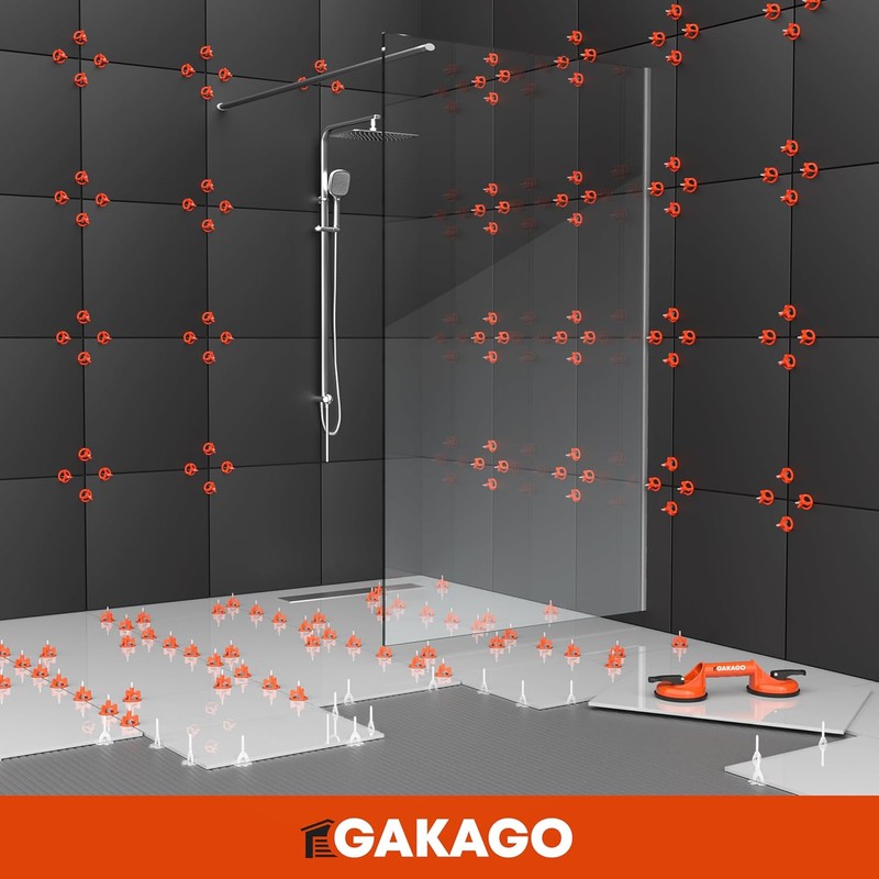 - Superior range: compared to similar competitor products, the tile laying aid from Gakago has an outstanding application width for tile thicknesses from 3 mm to 18 mm
